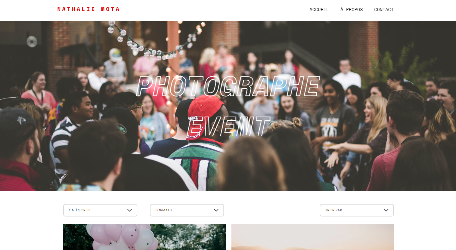 Après la perte de son précédent site, Nathalie Mota, photographe événementielle, m’a confié la création d’un nouveau site. En respectant les maquettes, les spécifications fonctionnelles, et en intégrant les images fournies, j’ai développé un site WordPress optimisé en suivant les principes du Green code pour réduire la taille des images et améliorer les interactions avec l’API.